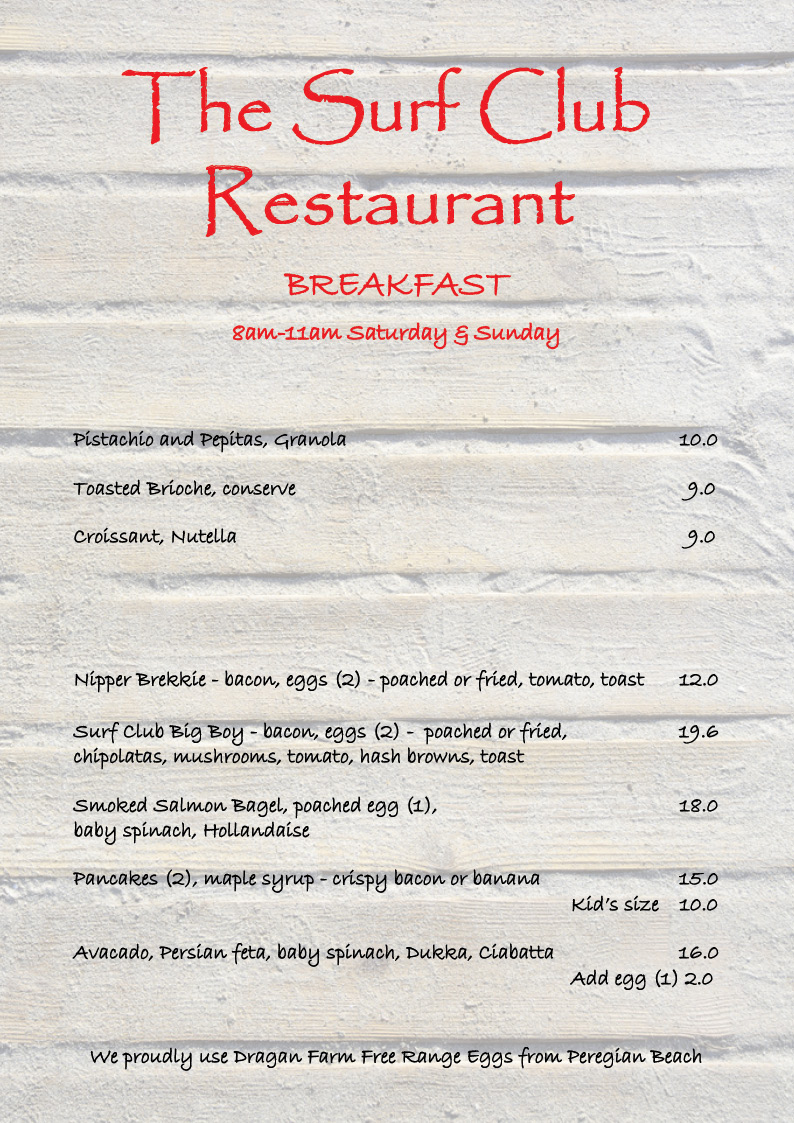The Surf Club Restaurant offers a range of tempting meals crafted from fresh ingredients and local produce at an affordable price.